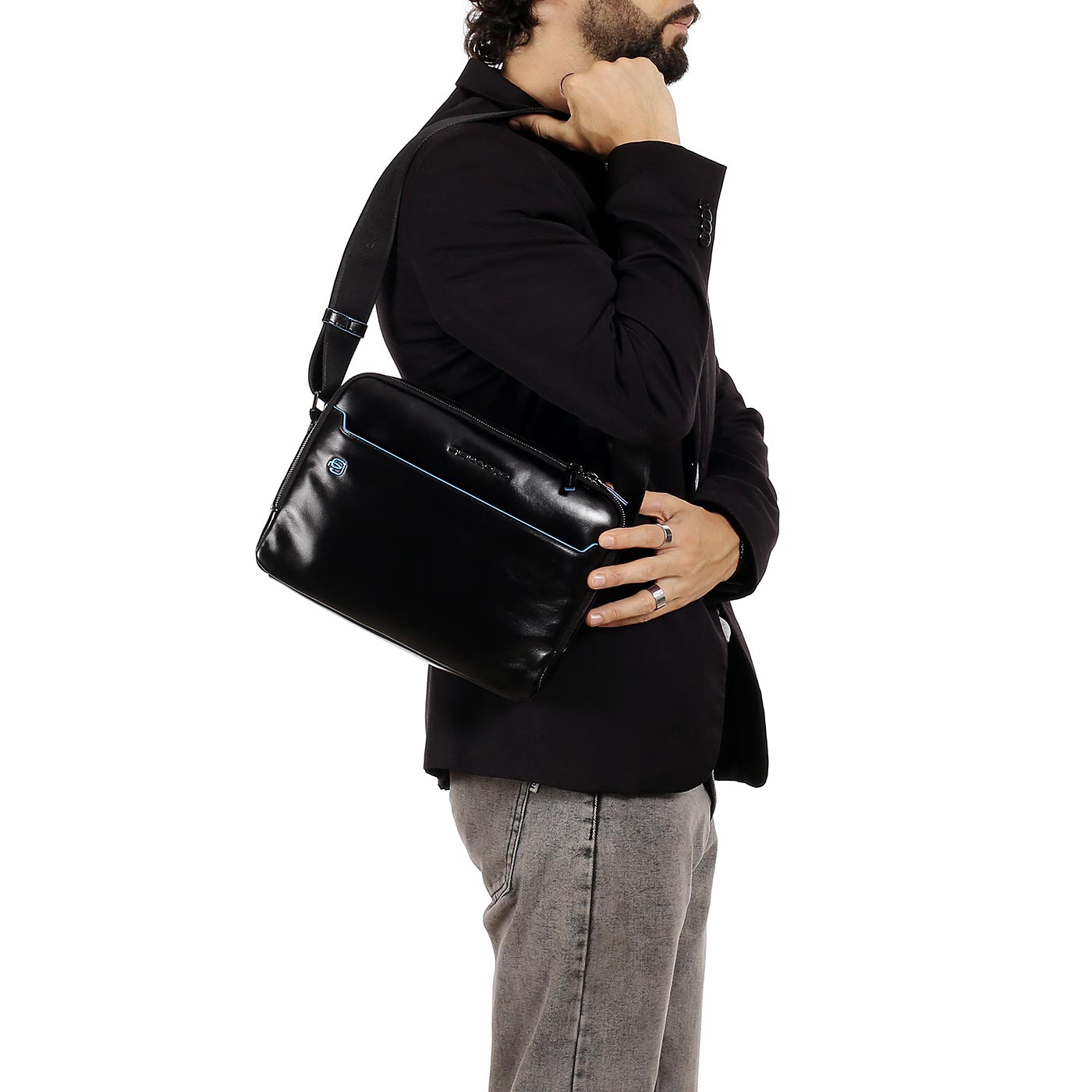 Piquadro Blue square Кожаная барсетка