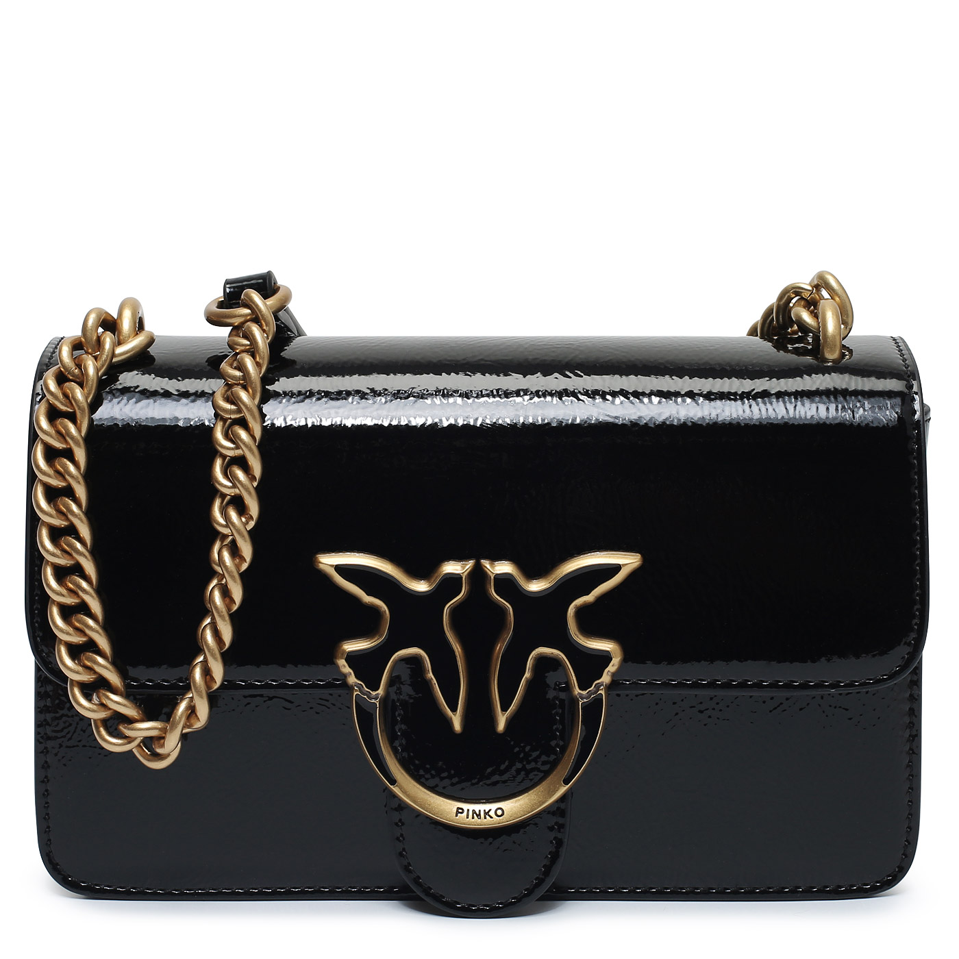 Сумка через плечо с цепочкой Pinko Love One 103335-A1UV/Z99Q_black - 2000558612609 черный полиуретан 21 x 12,5 x 7,5 Цена 28730 руб. купить в интернет-магазине PanChemodan.ru в Нальчике